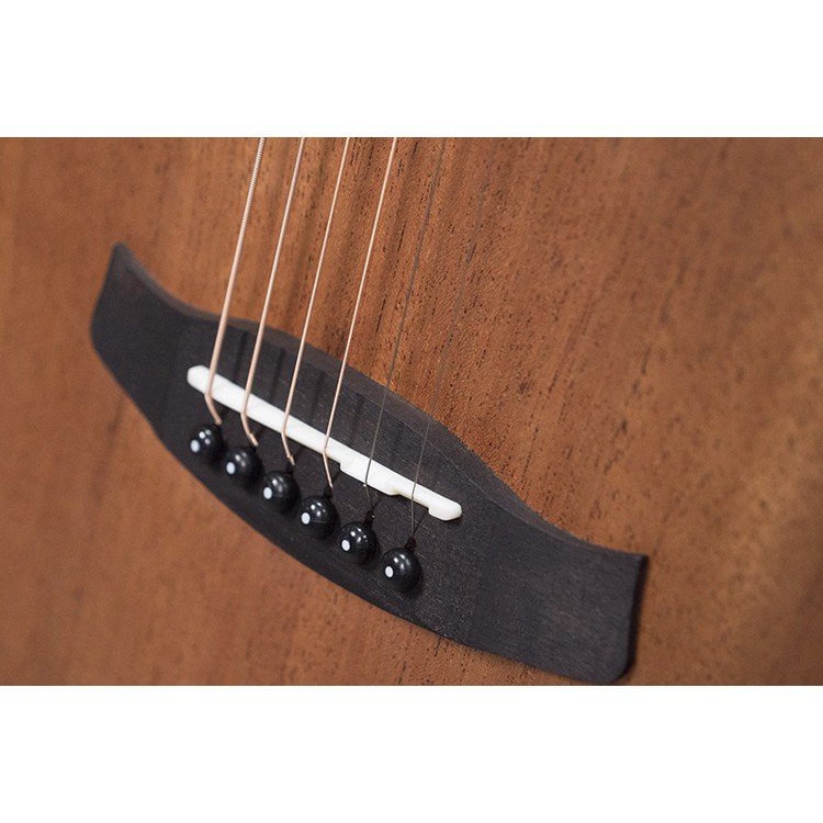 - Mặt trước sử dụng gỗ Solid Mahogany: Mặt trước đàn không có vết cắt được làm từ gỗ gụ nguyên khối mang đến âm thanh có độ ngân vang, tốc độ truyền âm thanh tốt hơn đem lại một âm thanh đặc trưng của Tanglewood.