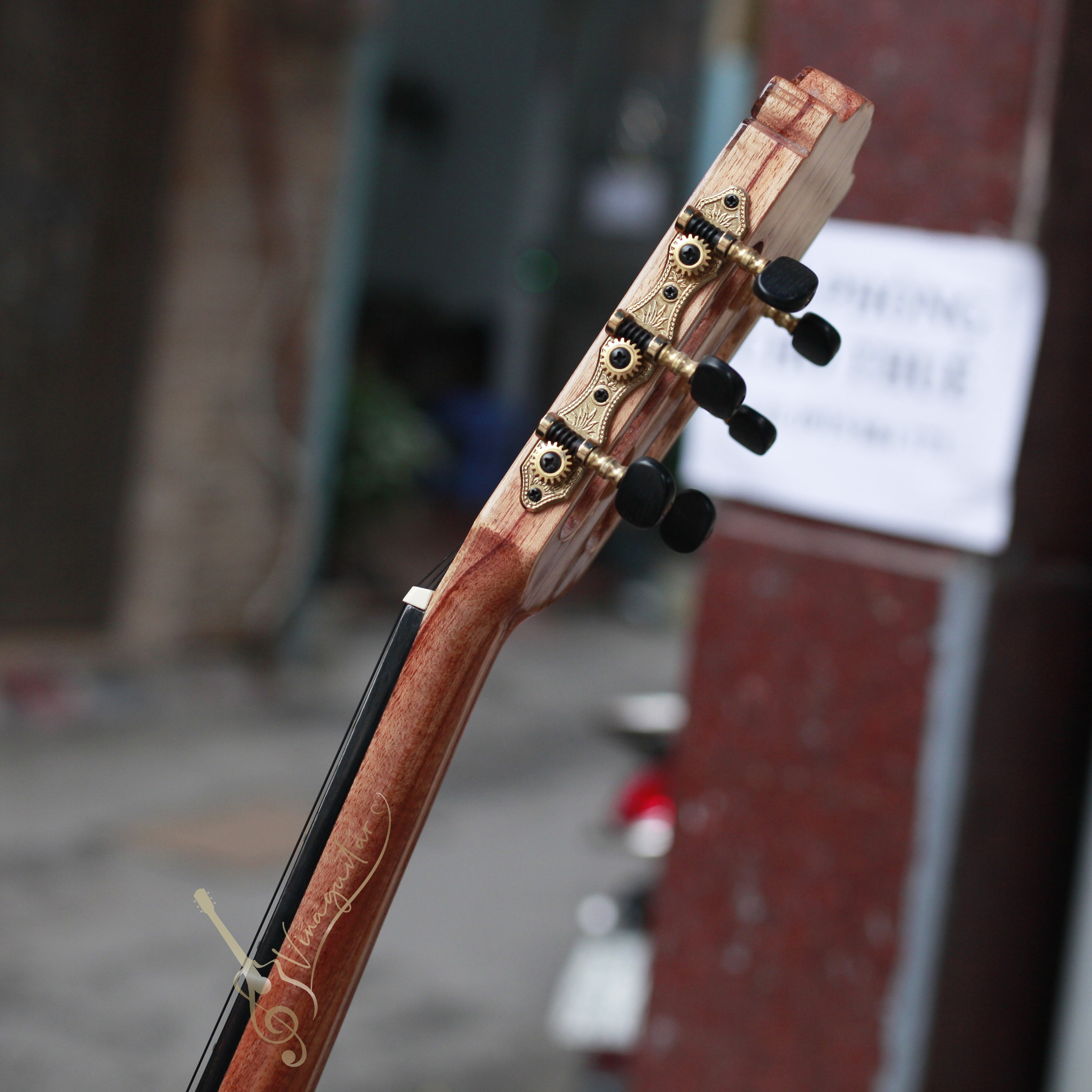 - Mặt đàn: gỗ thông thịt nguyên tấm AA, lưng hông gỗ sồi