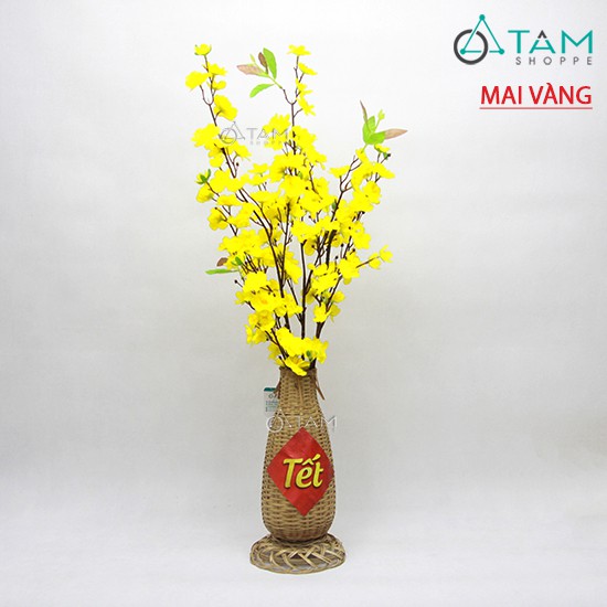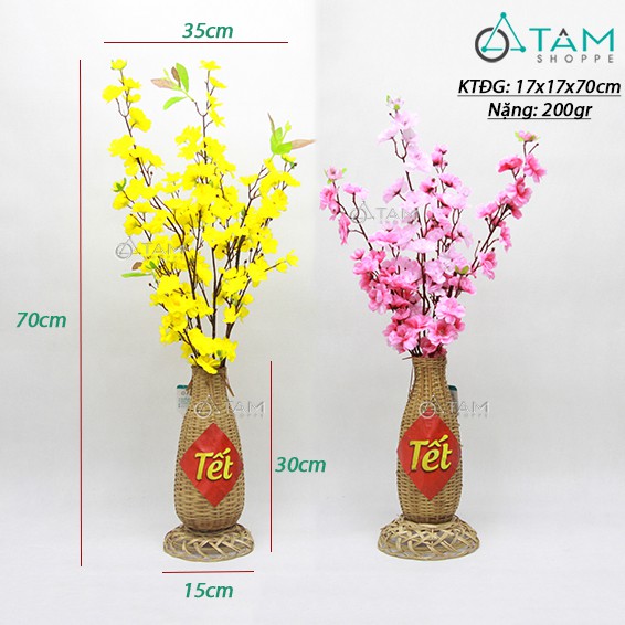 [HÀNG ĐẸP - CẮM SẴN Y HÌNH] Lọ hoa mai đào handmade bằng tre có đế T-HOA-15