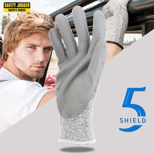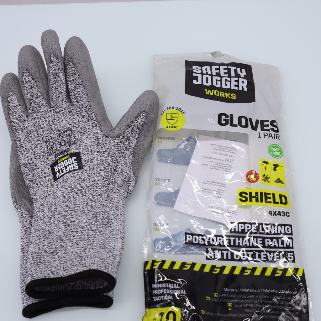 - Găng chống cắt Safety Jogger Shield có cấu tạo từ sợi HPPE với độ dày cao để cung cấp khả năng chống cắt cấp 5