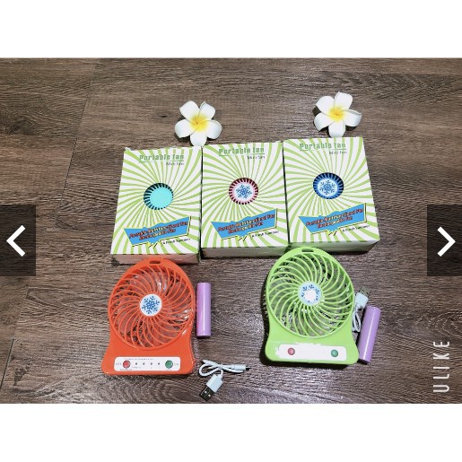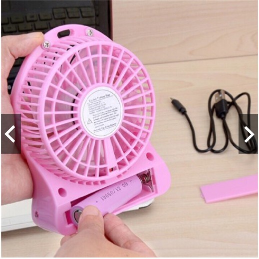 – bao gồm: một quạt, một dây cáp sạc usb, một viên pin sạc li-ion 3.7v