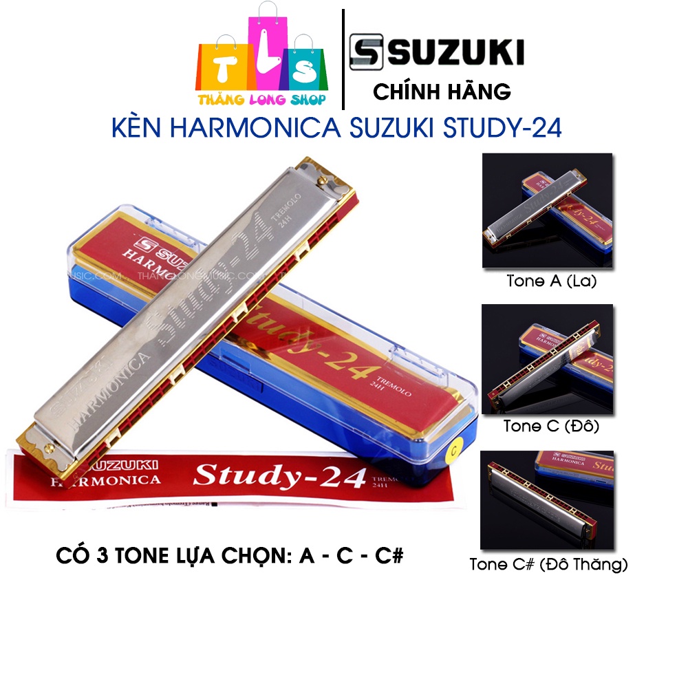 Suzuki Study 24 là loại kèn Harmonica được Suzuki dành riêng cho thị trường châu Á hướng đến những người mới bắt đầu chơi kèn Harmonica Tremolo.
