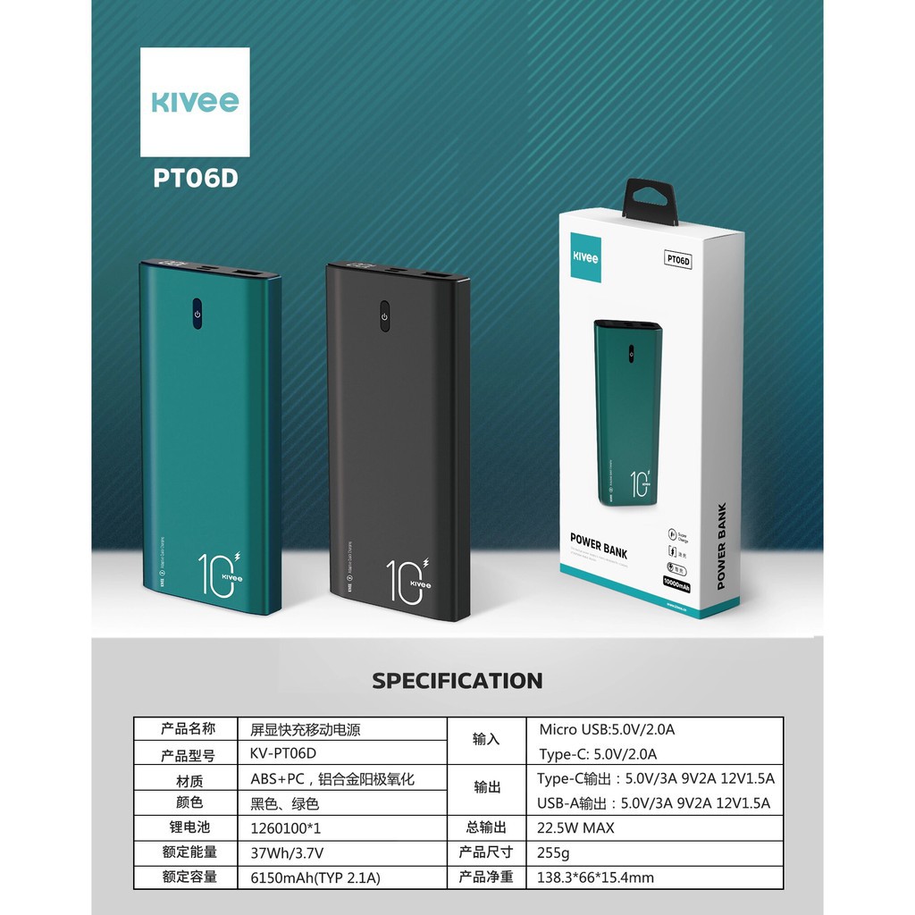 [ Chính Hãng Kivee ] Sạc Dự Phòng dung lượng 10000 Mah PT06D