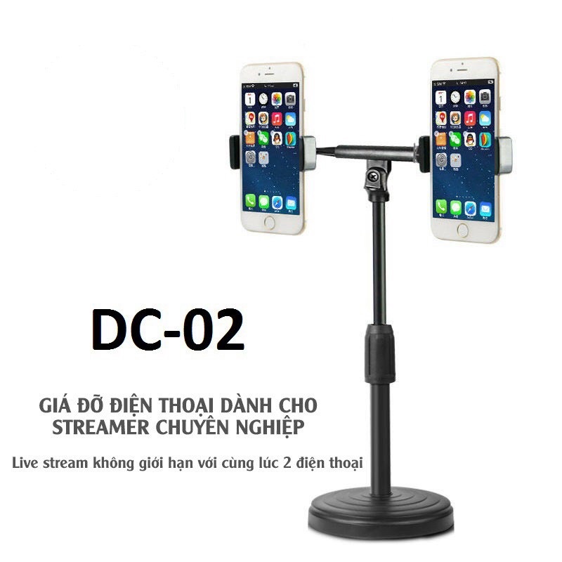 Giới thiệu [Hàng loại 1] Giá đỡ livestream kéo dài 2 điện thoại chữ T DC02