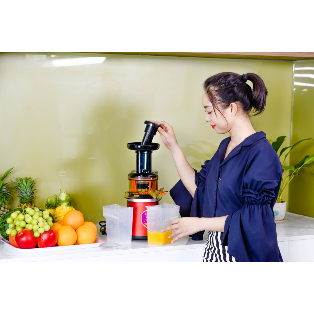 - Hoạt động êm ái: với công suất 150 W, máy ép với tốc độ chậm nên hoàn toàn không gây ra tiếng ồn lớn như máy ép thông thường