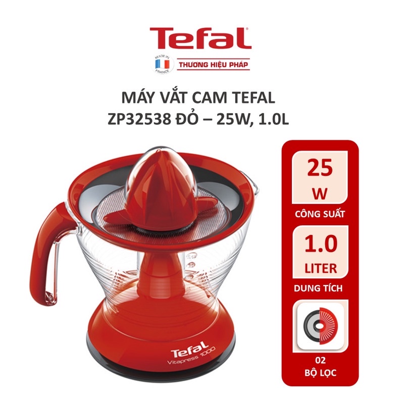 Giới thiệu [Chính Hãng] Máy vắt cam Tefal Vitapress ZP302538 - 25W - 1L màu đỏ