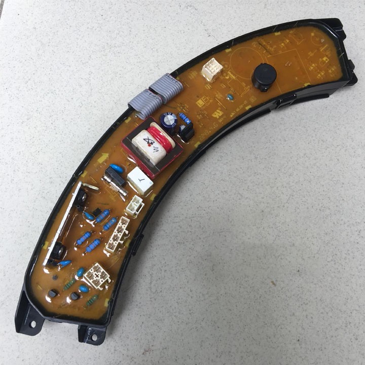 Đối với các thiết bị điện tử như máy giặt thì hệ thống bo mạch có vai trò rất quan trọng, nó được ví như bộ não trung tâm điều khiển mọi hoạt động, chu trình của máy giặt. Cấu tạo bo mạch cũng rất phức tạp với vô số những linh kiện, các phức hợp con chíp, IC…