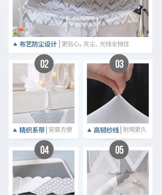 Lưu ý: miếng vải che phía nóc mùng nên không lo bụi bặm ạ.