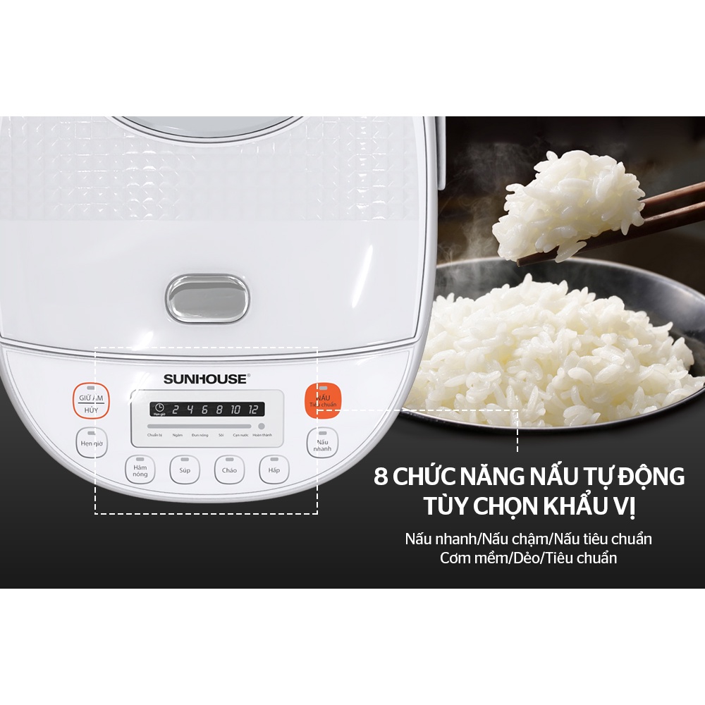 {HÀNG MỚI CHÍNH HÃNG} Nồi Cơm Điện Tử 1.8L SUNHOUSE SHD8906 đa chức năng, nấu cơm ngon