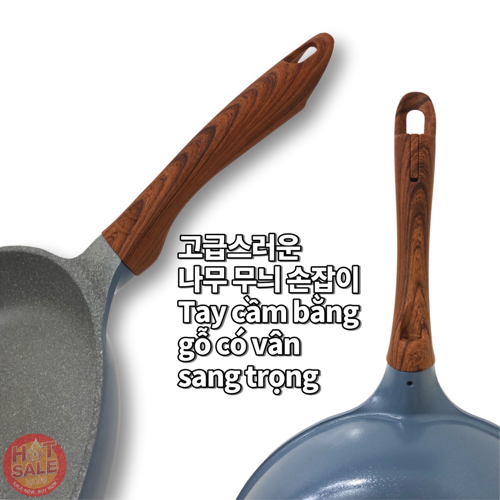 ✔ Tay cầm chảo bằng gỗ có vân sang trọng, cách nhiệt, an toàn cho người dùng.
