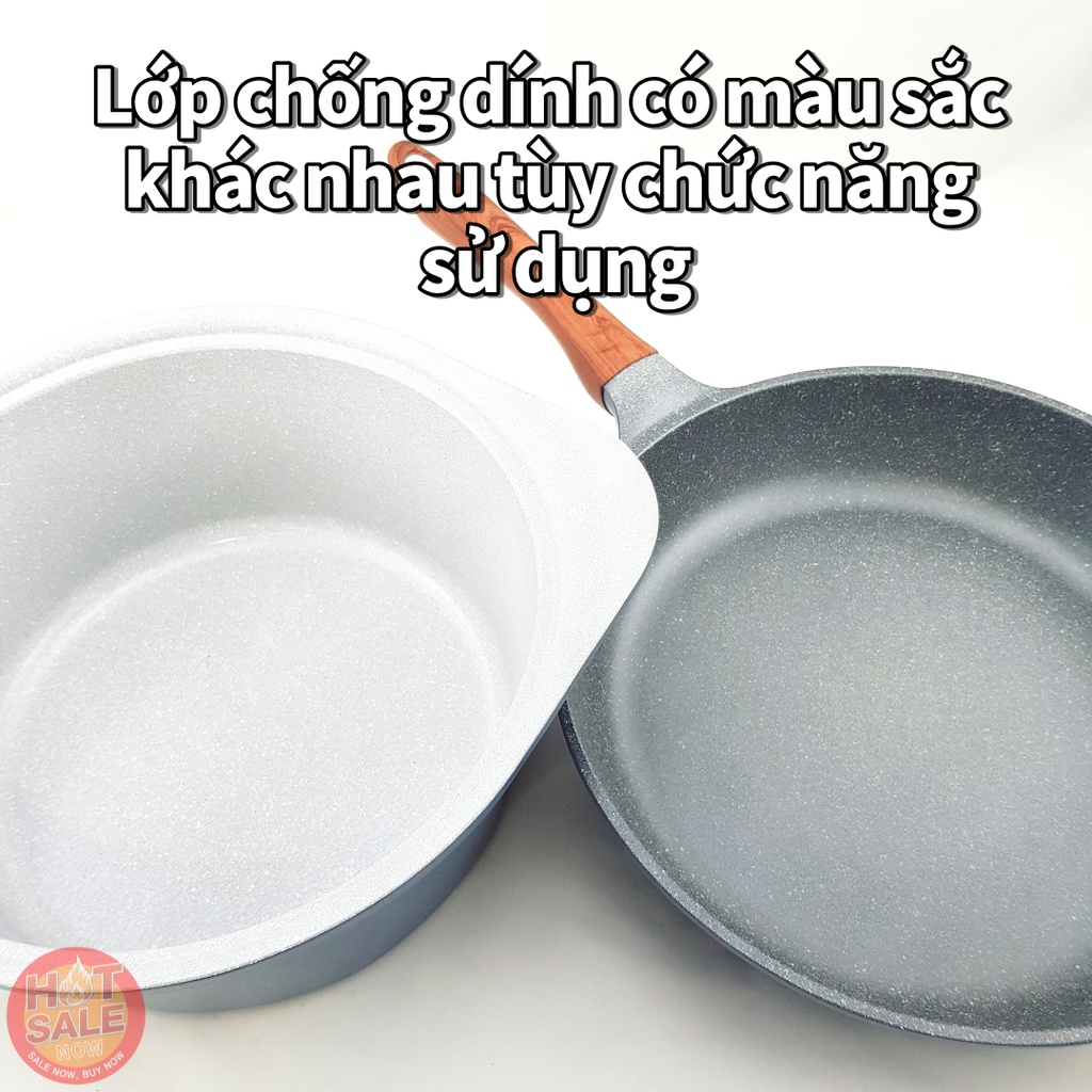 ✔ Lớp vân đá bên trong cực kì sang trọng và hút mắt, chịu nhiệt, siêu chống dính đặc trị cho những món ăn dễ bám màu, bám mùi.