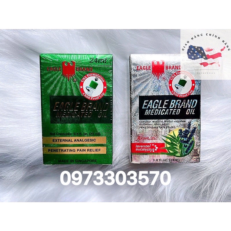 Giới thiệu [Hàng Mỹ ] Dầu Gió EAGLE BRAND Xanh ,trắng Con Ó 2 Nắp 24ml date 2026