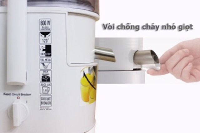 Để thuận tiện cho người dùng trong quá trình chế biến, phần ống dẫn trái cây của máy đã được thiết kế đường kính rộng hơn cho phép người dùng có thể ép được nguyên trái mà không cần cắt nhỏ. Đường kính rộng đến 75 mm.