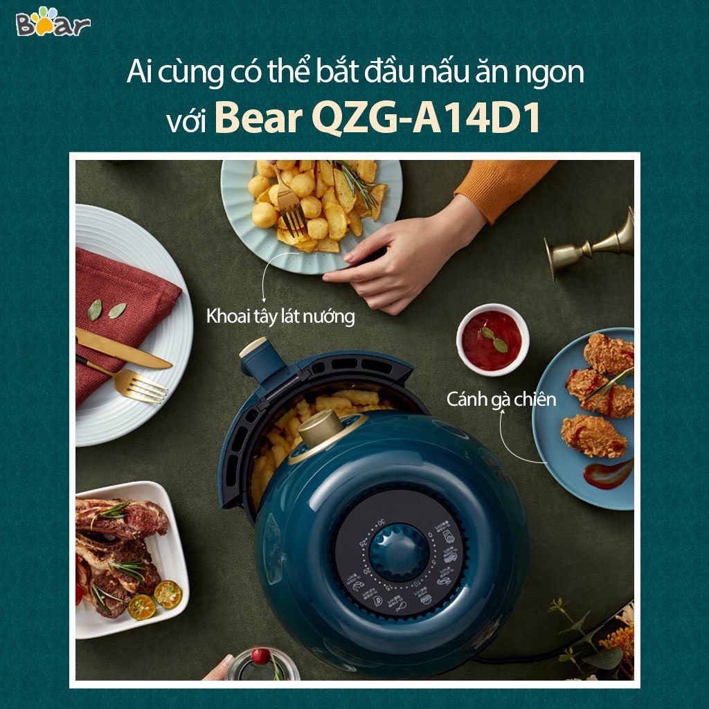 [Chính hãng] Nồi Chiên Không Dầu Bear 3L, Lòng Nồi Thép Không Rỉ Phủ Chống Dính QZG-A14D1
