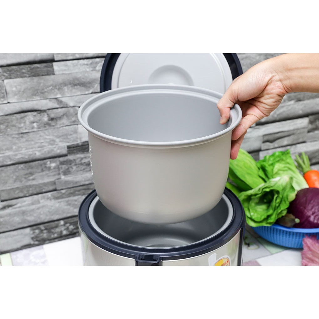 Lòng nồi bằng chất liệu bằng hợp kim nhôm rất dày giúp nấu cơm rất ngon, giữ ấm lâu, cùng với lớp phủ lớp chống dính cho cơm nấu ngon hơn, không bám nồi và dễ dàng vệ sinh chùi rửa.