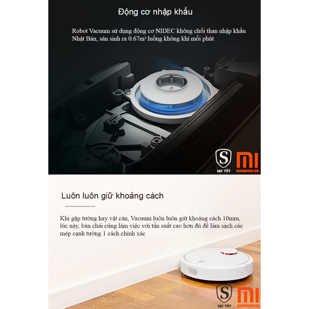 ====== Xin Quý Khách Lưu Ý : Sản Phẩm chỉ bán/giao hàng tại TPHCM và các khu vục lân cận , nếu Quý Khách ở tỉnh xa muốn mua hàng vui lòng thanh toán bằng thẻ ngân hàng trên shopee ( không nhận Ship COD đối với các tỉnh thành xa TPHCM ). Cảm Ơn.✔ Robot hút bụi tự động là sản phẩm mới nhất của Xiaomi trong lĩnh vực điện gia dụng. Sản phẩm Xiaomi Mi Robot Vacuum có giá bán chỉ khoảng 250 USD, rẻ hơn gần 80% so với giá của một sản phẩm tương tự được biết đến khá nhiều tại phương Tây đó là Roomba 980 của hãng iRobot (900 USD).