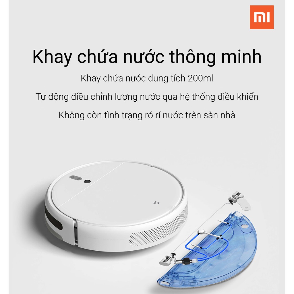 ► Khay chứa nước thông minh, có dung tích không quá lớn, chỉ 200ml nhưng được Xiaomi tối ưu hóa để tự động tinh chỉnh lượng nước thông minh để không chỉ giúp lau đến 100m2