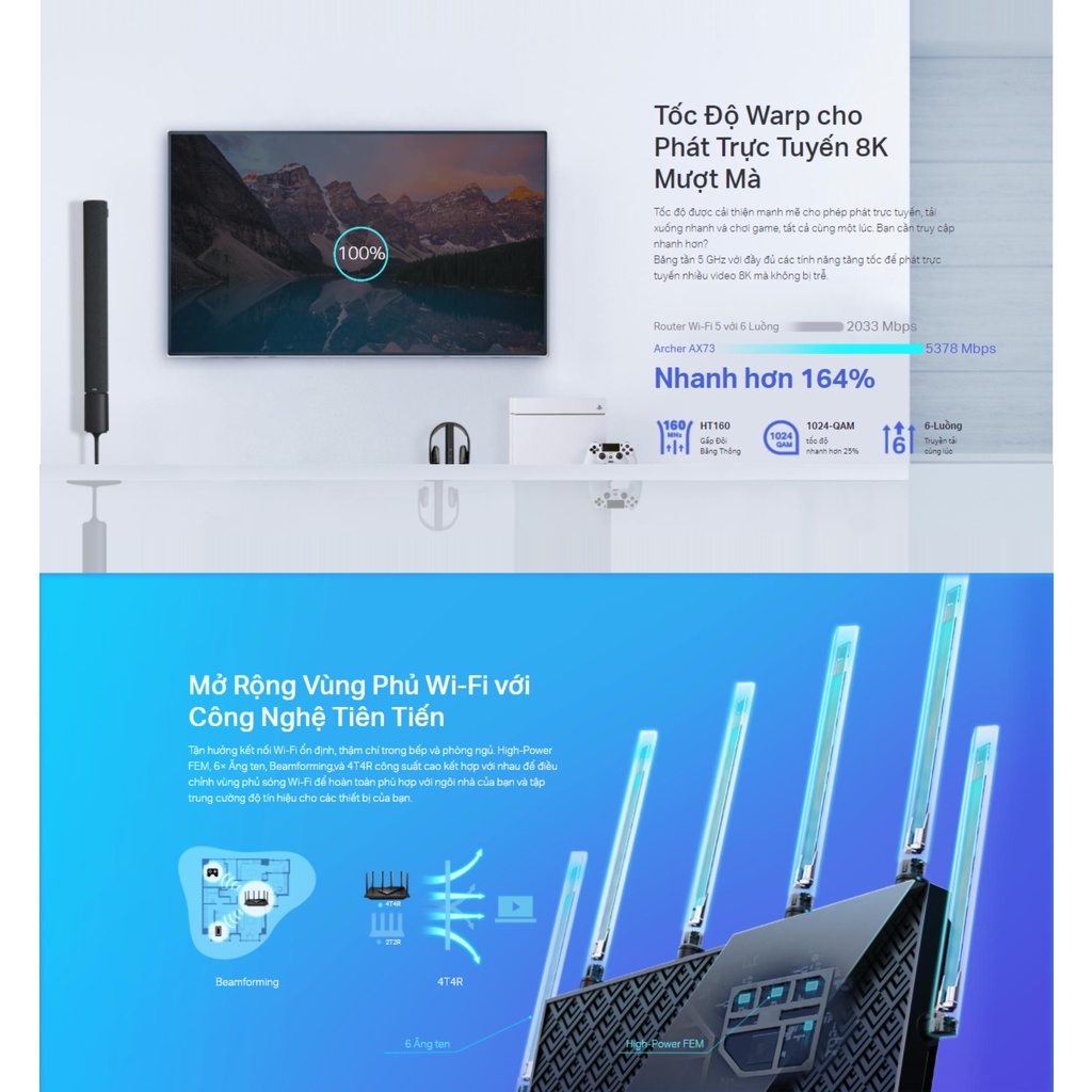Máy tính & Laptop > Thiết Bị Mạng > Bộ Phát Wifi || [Chính Hãng] Phát WiFi 6 Tp-Link Archer AX73 One Mesh AX5400 GigabitCòn hàng