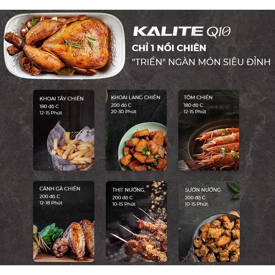 Thiết Bị Điện Gia Dụng > Đồ gia dụng nhà bếp > Nồi chiên không dầu || [HÀNG SẴN] NỒI CHIÊN KHÔNG DẦU KALITTE Q10 (10 LÍT, BH 1 NĂM, LỖI 1 ĐÔI 1 TRONG 7 NGÀY)Còn hàng