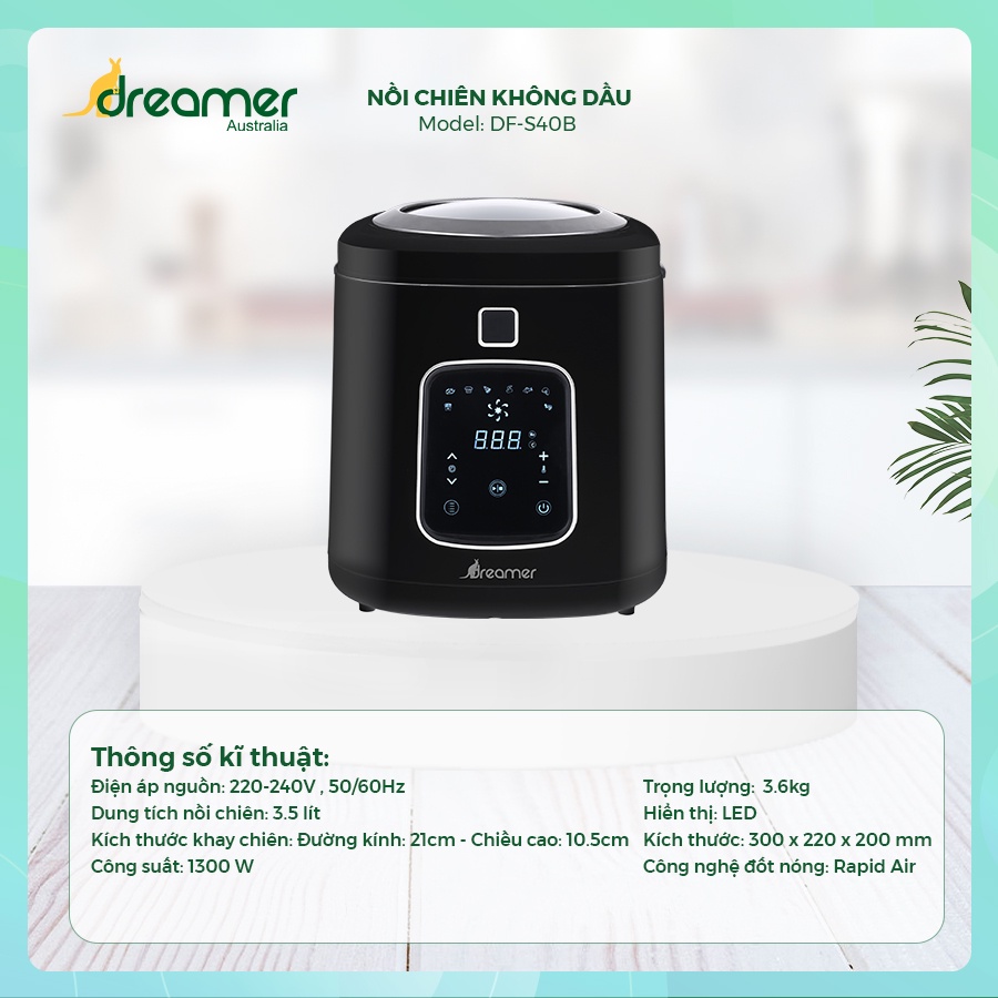 Nhà cửa & Đời sống > Dụng cụ nhà bếp > Nồi || [HÀNG ÚC CHÍNH HÃNG]-Nồi Chiên Không Dầu Cảm Ứng 8 Chức Năng Nấu Dreamer DF-S40B - Hàng chính hãng Úc, Bảo Hành 12 ThángCòn hàng