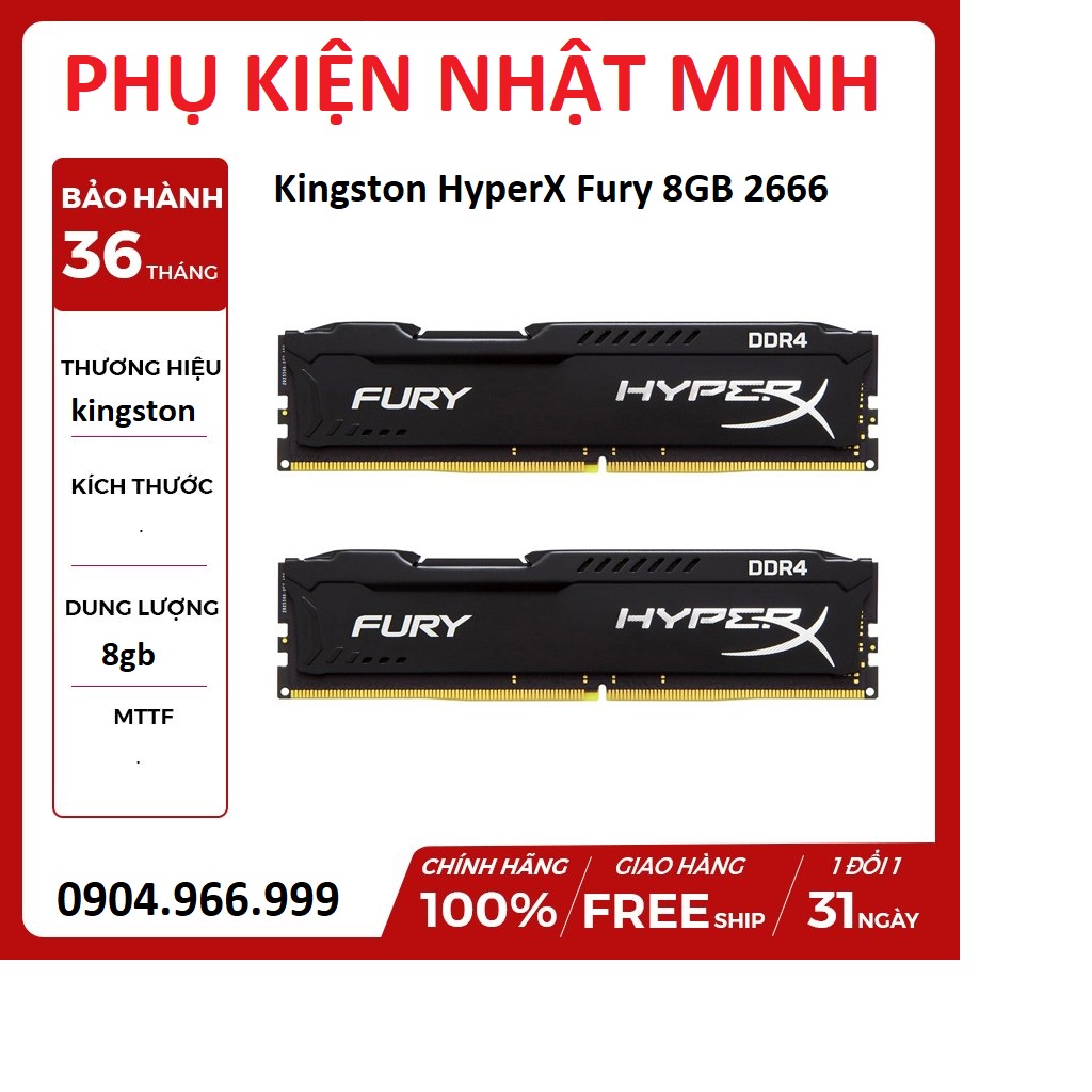 Máy tính & Laptop > Linh Kiện Máy Tính > Ram Máy Tính || [HÀNG XỊN TEM VSP] Ram PC Kingston HyperX Fury Black 8GB Bus 2666/ bus 3200 DDR4 - Đẳng cấp đến từ thương hiệu BH 3 NĂMCòn hàng