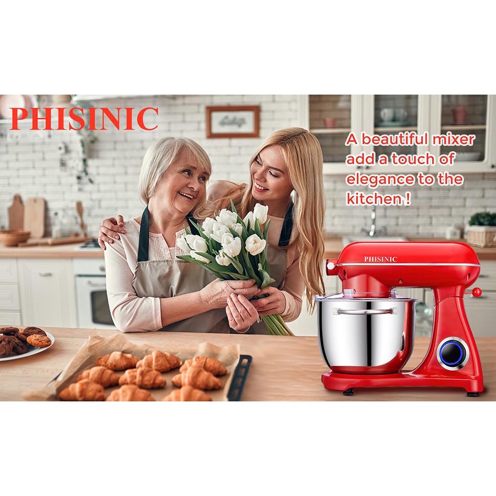 (Hàng xuất Đức) Máy nhào bột Phisinic / Cooklee 8L 1800W - Thân hợp kim nhôm không phải nhựa, 100% thố inox chạy êm ái
