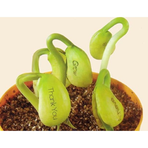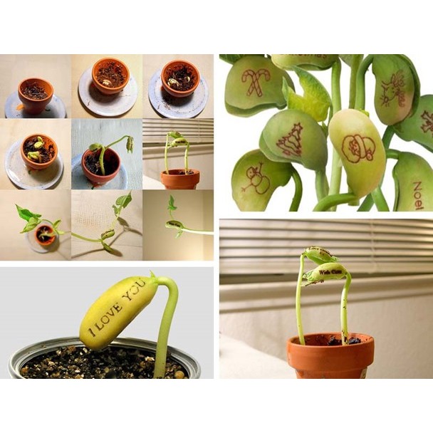 Hạt đậu thần kỳ là một món quà tặng độc đáo, một cách biểu lộ, chia sẻ tình cảm độc đáo. Một cách sáng tạo giúp bạn gửi đi những thông điệp "khó nói" hay đơn giản chỉ là giây sự hồi hộp, bất ngờ thú vị cho người nhận. Hạt đậu thần kỳ với đường kính >2cm, sau khi bạn gieo vào đất ẩm, một hàng chữ sẽ hiện lên ngay trên vỏ hạt mang theo thông điệp mà bạn muốn gửi tặng bạn bè, người thân...