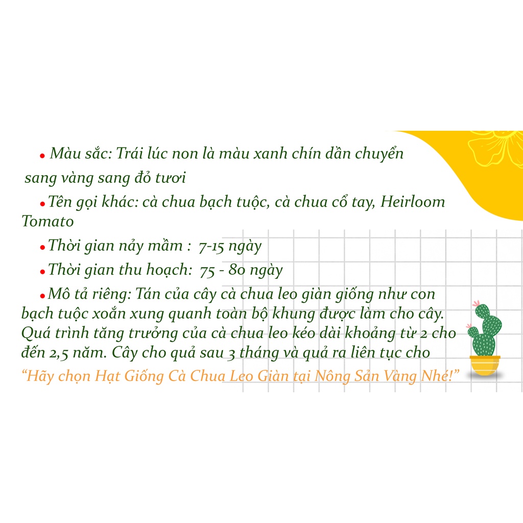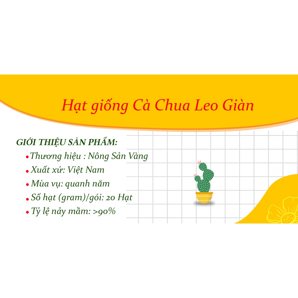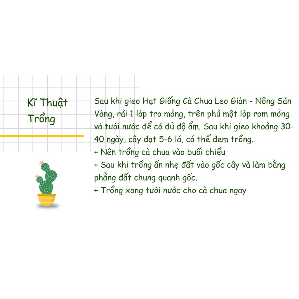 Nhà cửa & Đời sống > Làm vườn > Hạt giống & chất hỗ trợ trồng cây || Hạt giống Cà Chua Leo Giàn ( Gói 20 Hạt ) - Nông Sản VàngCòn hàng