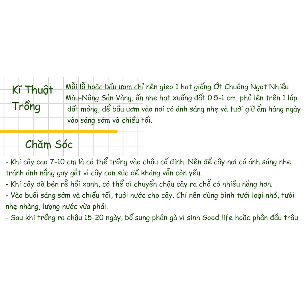Nhà cửa & Đời sống > Làm vườn > Hạt giống & chất hỗ trợ trồng cây || Hạt giống Ớt Chuông Ngọt Nhiều Màu ( Gói 40 hạt ) - Nông Sản VàngCòn hàng