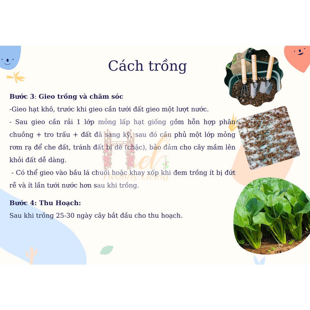Hạt Giống Rau Cải Ngọt (Cao Sản Giòn Ngọt) - Trồng Hạt Giống Rau Củ Quả Bằng Đất Sạch, Xơ Dừa, Mùn Dừa, Phân Bón Hữu Cơ