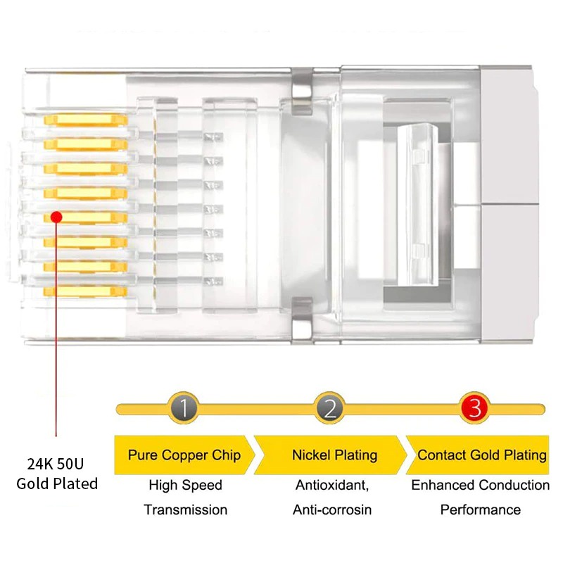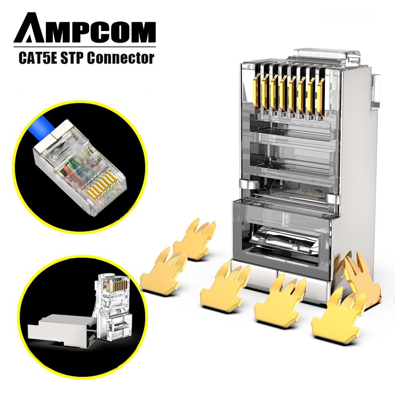 Máy tính & Laptop > Thiết Bị Mạng > Khác || Hạt mạng cao cấp AMPCOM RJ45 STP Cat5e 100% đồng, đầu bọc kim loại. Đạt chuẩn Fluke Test, 100pcs/ túiCòn hàng