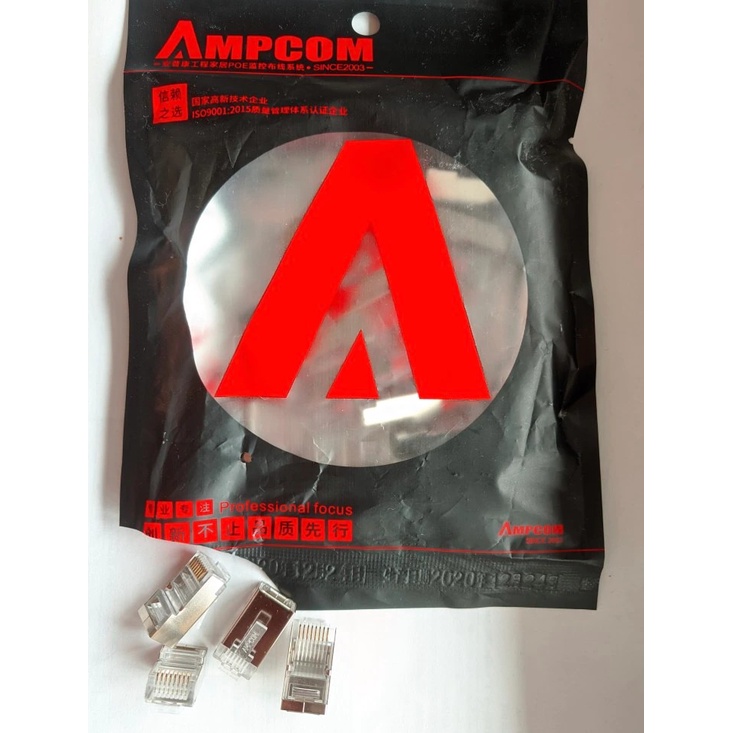 Hạt mạng cao cấp AMPCOM RJ45 STP Cat5e 100% đồng, đầu bọc kim loại. Đạt chuẩn Fluke Test, 100pcs/ túi