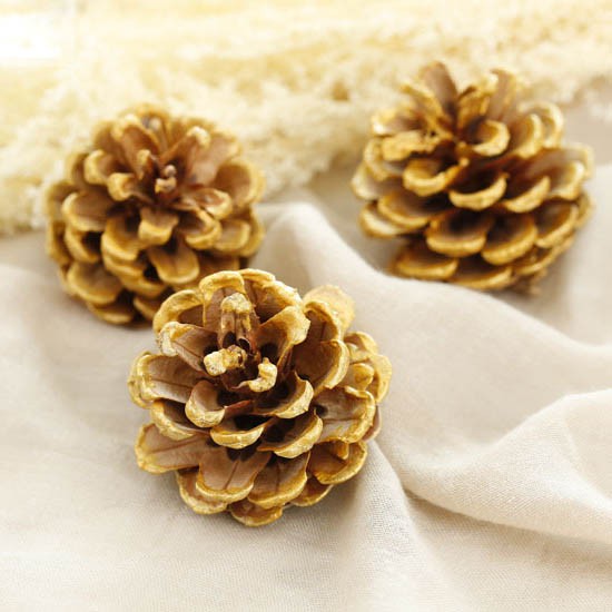 - Tròn - Gold (3 hạt): Set 3 hạt thông khô hình tròn / Màu Gold / Kích thước 4-6cm