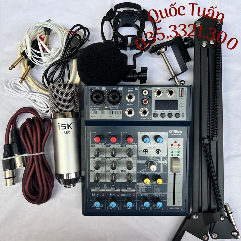 Bộ Hát Thu Âm Livestream,Karaoke Mới Nhất 2022 Micro AT350+Mixer F4 pro max kèm đầy đủ phụ kiện tặng tai nhét