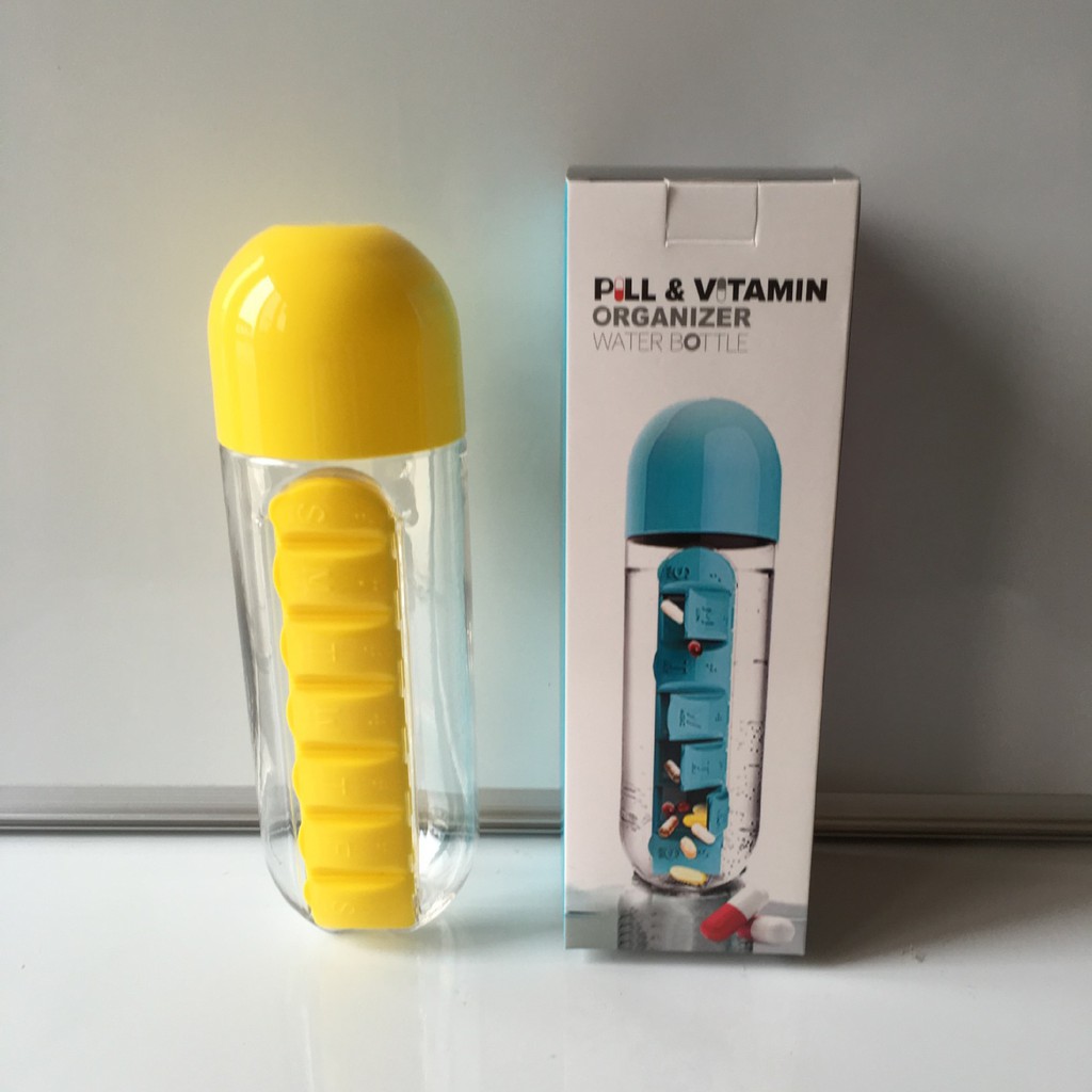Nhà cửa & Đời sống > Bộ đồ bàn ăn > Bình nước & phụ kiện || HCM - Bình nước nhựa 600ml, có khay đựng thuốc dùng trong 1 tuầnCòn hàng