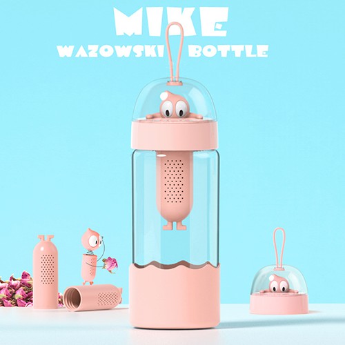 HCM - Bình nước thủy tinh Wormy kute kèm bộ lọc pha trà, cà phê 370ml