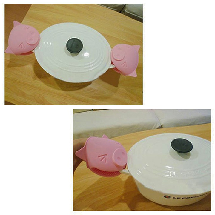 Giới thiệu HCM - Combo 2 miếng silicon dày 150g hình heo cute cầm bát đĩa nồi niêu nóng chống bỏng tay