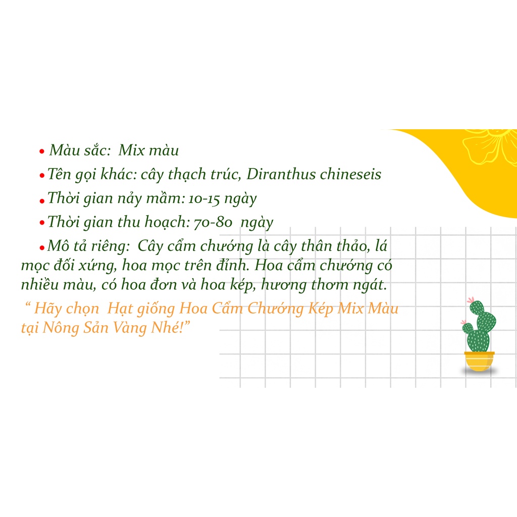 Nhà cửa & Đời sống > Làm vườn > Hạt giống & chất hỗ trợ trồng cây || [HCM]Hạt giống Hoa Cẩm Chướng Kép Mix Màu(Gói 100 hạt ) - Nông SảnCòn hàng