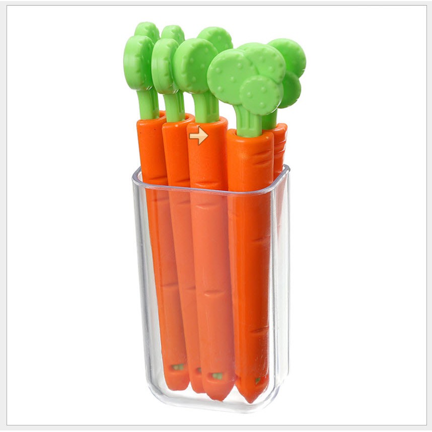 [HCM] Kẹp túi thực phẩm MẪU CÀ RỐT CÓ HỘP ĐỰNG 5 CÂY như hình