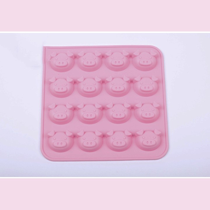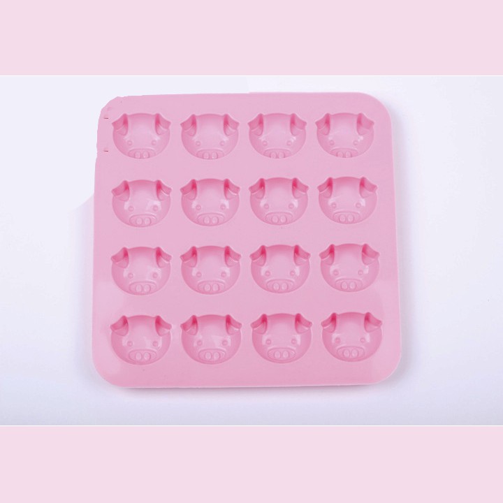 HCM - Khuôn silicon đổ socola, thạch rau câu, kẹo dẻo cola hình mặt heo 16 ô
