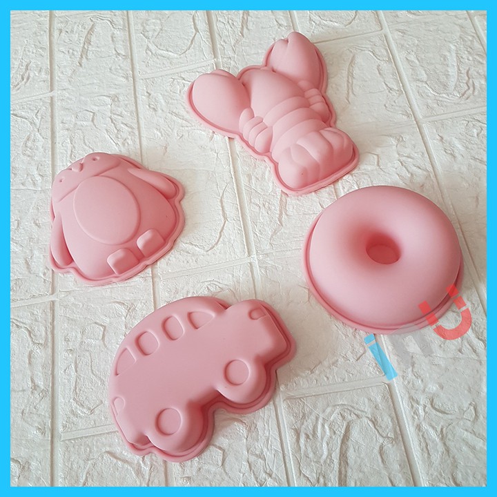 HCM - Khuôn silicon tròn bánh Donut, xe hơi, chim cánh cụt, tôm hùm nướng bánh, đổ rau câu