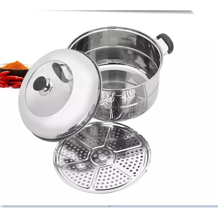 Thiết Bị Điện Gia Dụng > Đồ gia dụng nhà bếp > Nồi nấu đa năng || [HCM] Nồi inox có khay hấp tiện lợi. Nồi chuyên hấp cách thủy như bánh bao xôi... cho mọi nhàCòn hàng