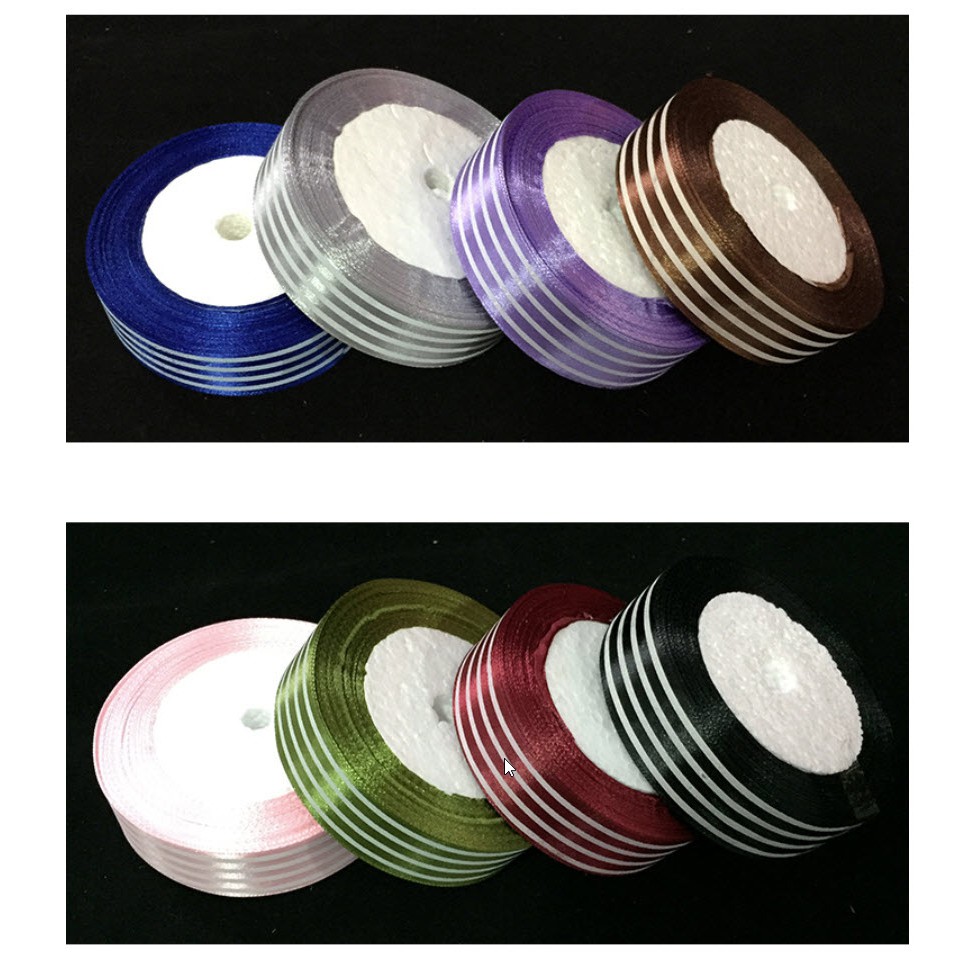 Ruy băng lụa kẻ sọc cuộn dài 25 m bản rộng 2,5 phân đủ màu sắc