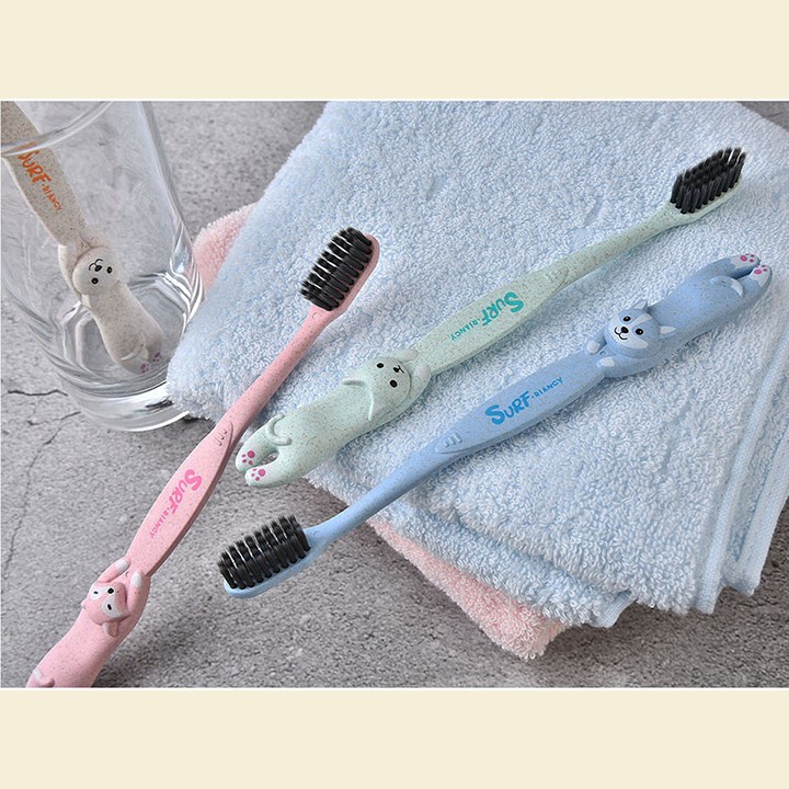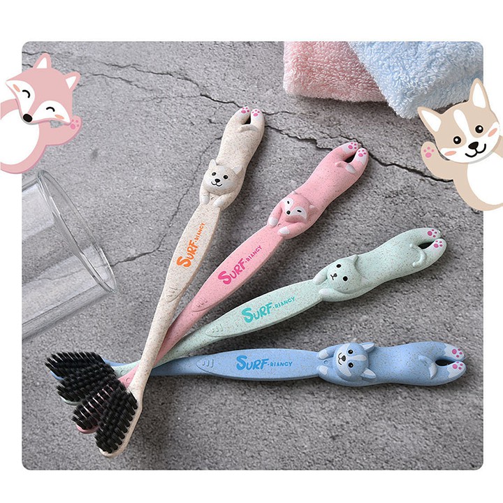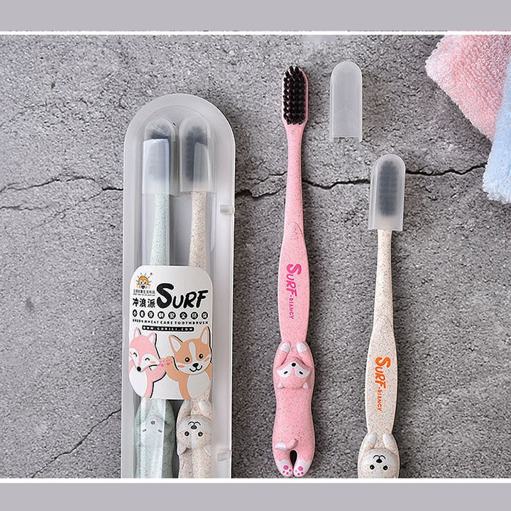 Nhà cửa & Đời sống > Đồ dùng phòng tắm > Khác || HCM - Set 2 bàn chải lúa mì thiên nhiên có nắp đậy hình Chó Mèo Cáo kèm hộp đựng mang du lịchCòn hàng
