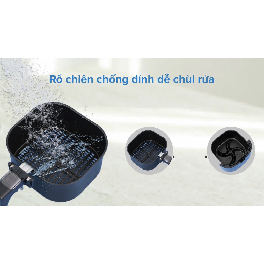 - Công nghệ Rapid Air với luồng khí nóng được luân chuyển liên tục đều khắp khay chiên, đối lưu nhiệt tốt, nhanh chóng làm chín đều thực phẩm mà không cần dùng tới dầu hoặc chỉ cần rất ít dầu.
