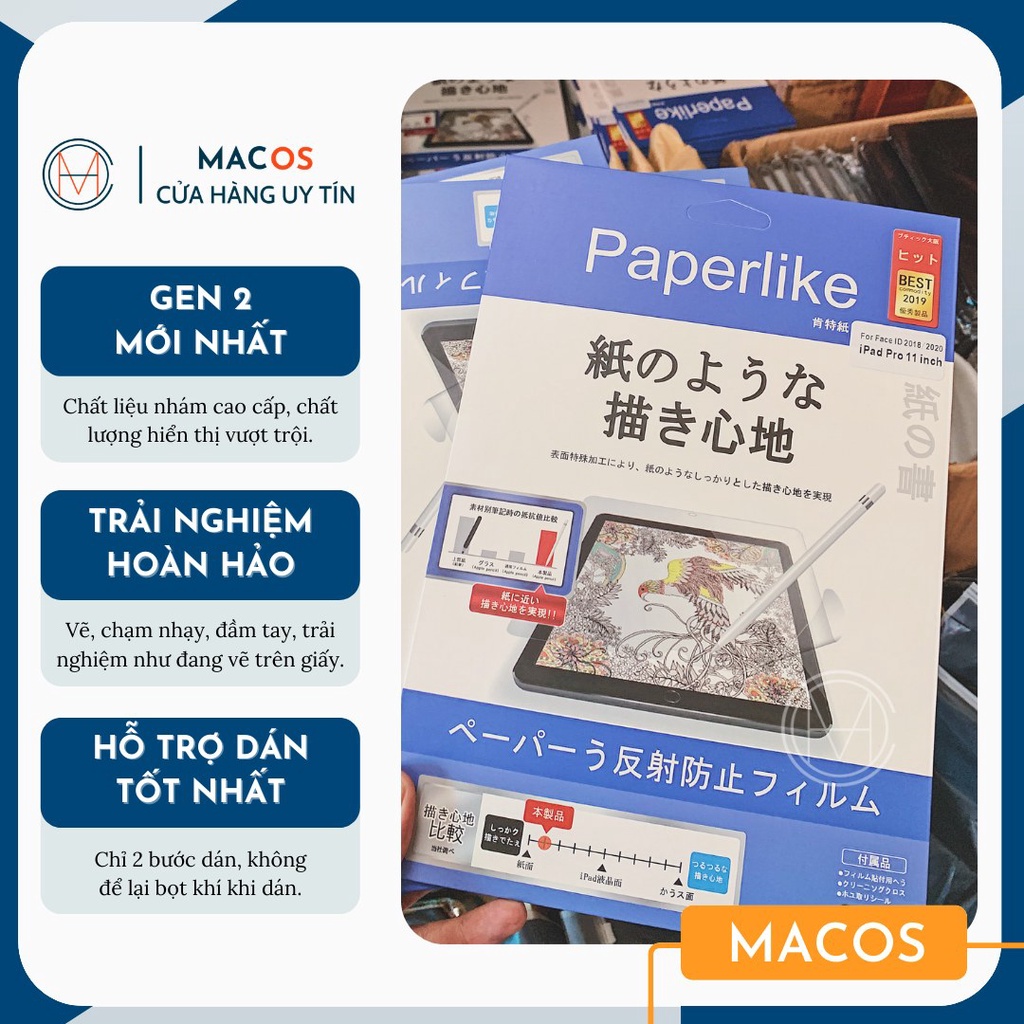 Miếng dán Paper-like bản PREMIUM là loại miếng dán được ưa thích bởi các hoạ sĩ vẽ truyện tranh, cho cảm giác vẽ viết như trên giấy. Sản phẩm sử dụng chất liệu 100% Nhật Bản, được phân phối và đảm bảo chất lượng bởi Macos shop.