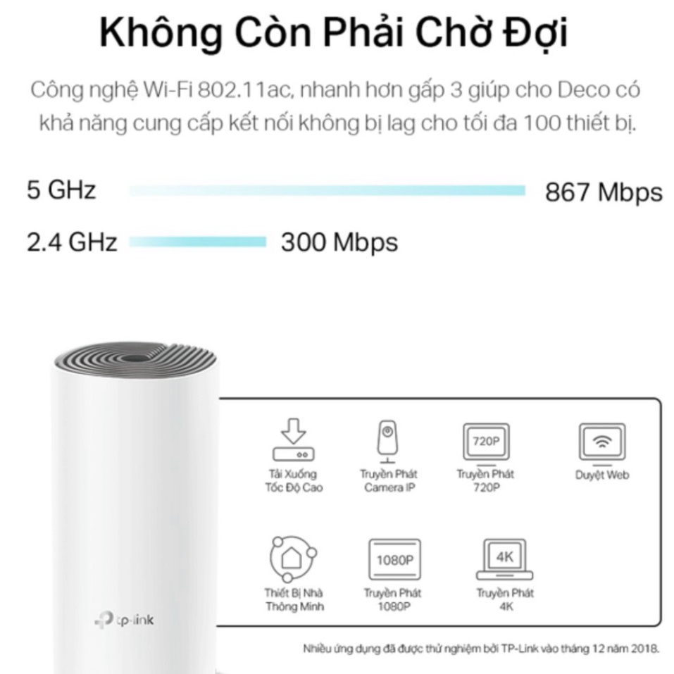 ✔️ Với Deco E4, bạn sẽ lập tức sỡ hữu một hệ thống mạng Wi-Fi tốc độ & độ ổn định cao lên đến 1167Mbps.