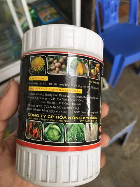 - Phun lên lá (pha 20g/ 16 lít nước sạch) : Khi cây ra nhánh, ra hoa và trái non, giúp cây đâm nhánh mới, chống rụng hoa, tăng đậu trái. Sau đó 7 ngày phun lại 1 lần
