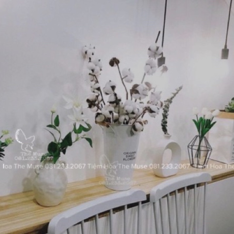Hoa Bông Gòn - Hoa Khô Trang Trí - Mô Phỏng Cotton Flower - Chất Liệu Cao Cấp