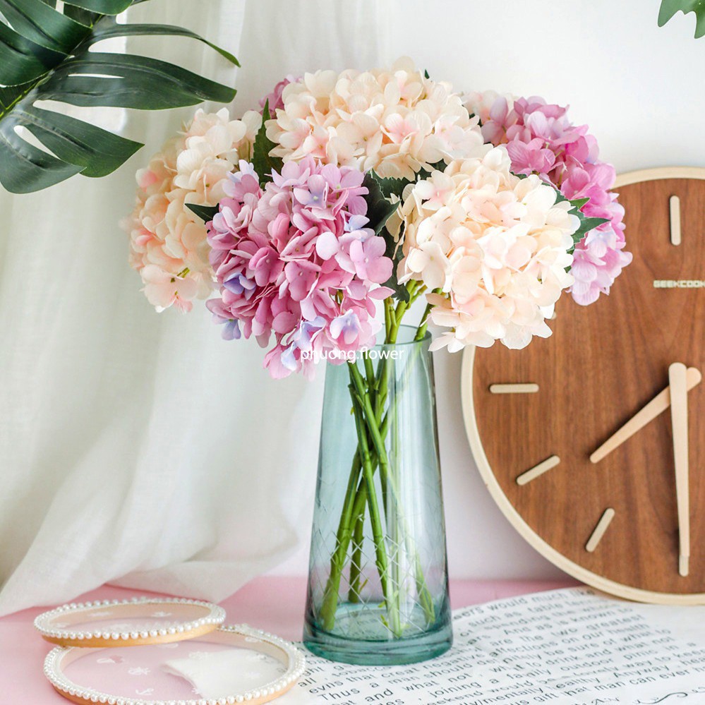 Hoa Cẩm Tú Cầu bằng Lụa 47cm 5 chùm hoa lớn Size lớn 30cm và vừa 15cm giống thật 99% dùng trang trí và cắm bình cực đẹp